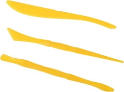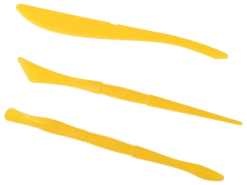 Del pakiranja so tudi 3 varni plastični nožki za natančno odstranjevanje odvečnega materiala in oblikovanje detajlov. Na embalaži najdete uporabno barvno legendo, ki svetuje, kateri odtenki nastanejo z mešanjem posameznih mas.