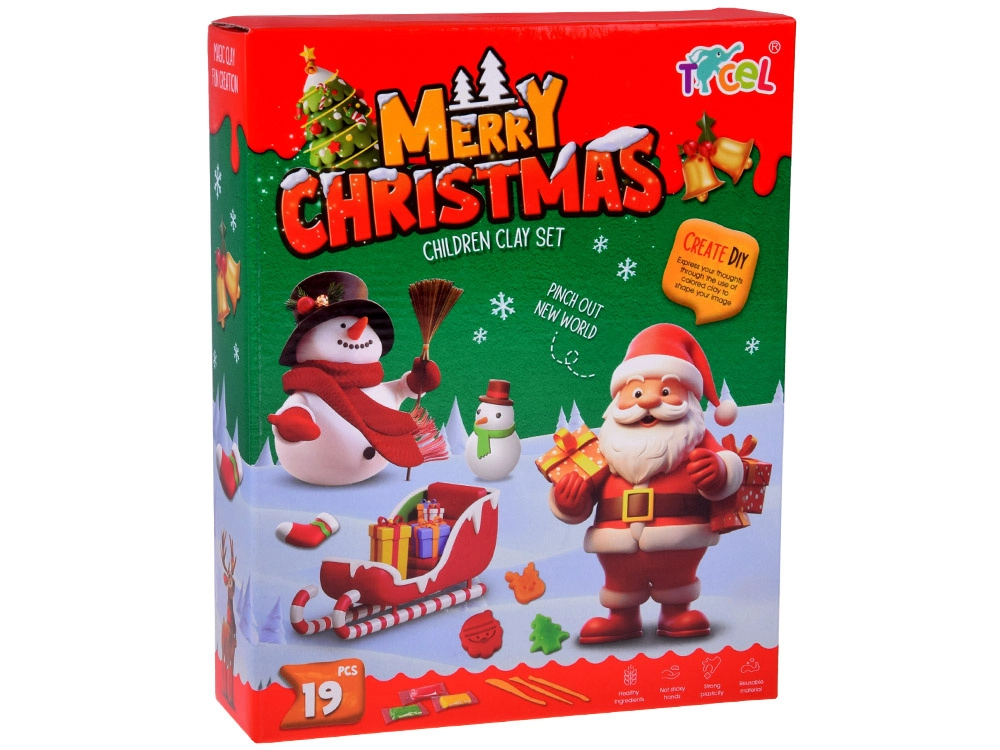 Božični komplet z modelirno maso spodbuja kreativnost, fino motoriko in domišljijo otrok. S tematskimi modelčki bodo zlahka ustvarili snežaka, drevesce, zvezdico ter motive z Miklavžem in božičnim vencem. Modelirna masa je mehka, prožna in dobro oblikovalna, barve je mogoče mešati in tako dobiti povsem nove odtenke.