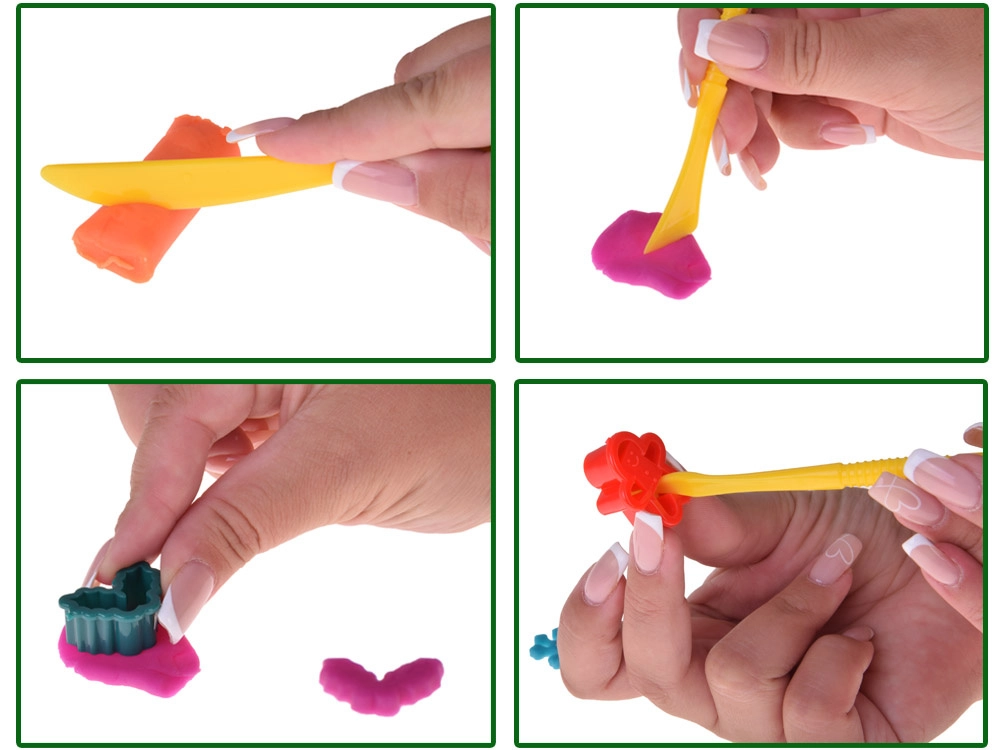 6 modelirnih mas, 10 modelčkov, 3 plastični nožki