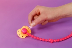 - Steklenička, kapica, plenička, slinček, ropotuljica, duda, verižica za dudo