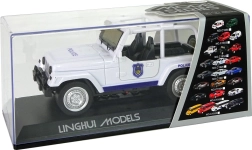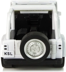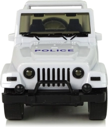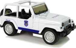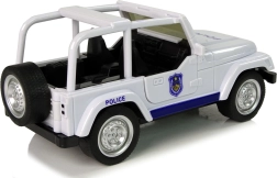 Majhno belo terensko policijsko vozilo bo razveselilo vsakega malega varuha reda. Ponuja navijalni (pull-back) pogon, svetlobne in zvočne učinke, odpirajoča se sprednja vrata ter gumijaste pnevmatike za boljši oprijem. Zaradi podrobno izdelane notranjosti in priloženega prozornega darilnega pakiranja je idealno tako za igro kot za zbirko.