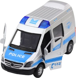 Verno izdelan policijski avto v merilu 1:32 združuje kovinsko karoserijo z odporno plastiko, zato je stabilen, varen in pripravljen na vsakodnevno akcijo. Avto samo povlecite nazaj in zahvaljujoč pogonu pull back bo sam speljal naprej. Odpirajoča se vrata okrepijo realističen doživljaj igre, medtem ko luči in zvoki vsaki intervenciji dodajo pravo vzdušje.