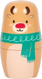 Prisrčen komplet lesenih matrjošk z motivi Božička, severnega jelena, pingvina in snežaka prinaša praznično vzdušje v vsak dom. Otroci in odrasli bodo uživali v zlaganju in vstavljanju figur po velikosti, kar spodbuja drobno motoriko, koordinacijo roka–oko in zbranost. Igrača je hkrati tudi stilska božična dekoracija za otroško sobo ali dnevni prostor.