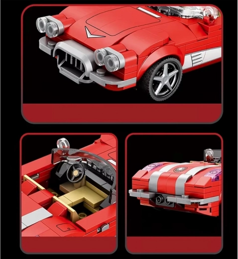 V paketu so srebrna platišča in nalepke za dodelavo detajlov, ki poudarijo retro karakter vozila, navdihnjenega z legendarnimi športnimi avtomobili 50. let. Stavebnica je zasnovana tako, da nudi privlačno in zadovoljivo gradnjo za izkušenejše graditelje.