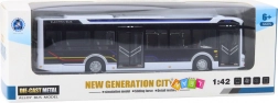 Realistični kovinski mestni avtobus v merilu 1:42 bo navdušil male in velike ljubitelje mestnega prometa. Ponuja kovinsko konstrukcijo s plastičnimi detajli, odpirajoča se vrata in lopute ter impresivne svetlobne in zvočne učinke na baterije. Zaradi dolžine 28,5 cm deluje mogočno in je odličen za igro ali zbirko.
