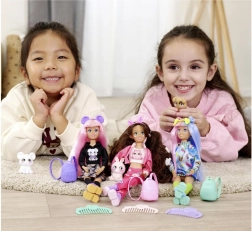 Odkrijte ljubek svet s punčko Kawaii Hi Lucy in njenim zajčkom Momom. Punčka z izjemno dolgimi lasmi, več kot 10 dodatki in premičnimi okončinami vabi k neskončnemu česanju, oblačenju in ustvarjalni igri. Stilska embalaža s srebrnim, bleščečim učinkom razveseli kot darilo.