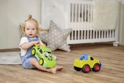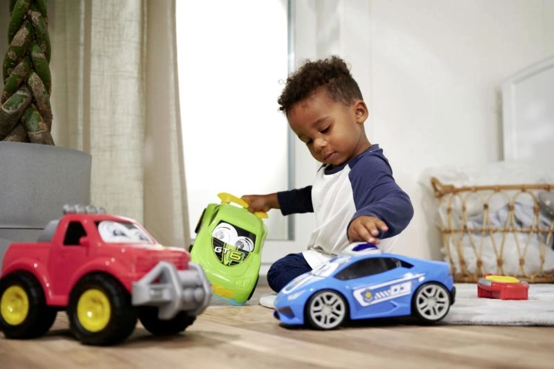 Gladka kolesa in mehanizem prostega teka omogočata otrokom, da avtomobilčke zlahka vozijo po tleh in preprogi – preprosto potisni in pelji.