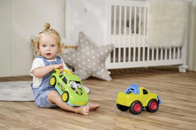 Odkrijte velike in vzdržljive plastične avtomobilčke, ki otroke navdušijo s svojo dolžino 27 cm, prijaznim videzom in gladkim gibanjem na prosti tek. Vsak model je zasnovan za male voznike – zaobljene oblike, varni robovi in enostaven oprijem zagotavljajo udobno in varno igro.