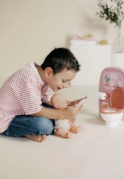 Ta realistični kopalni komplet za punčke Baby Nurse spremeni igro v pristno doživetje. Otroci urijo fino motoriko in razvijajo domišljijo pri negi svoje najljubše punčke. Kompaktne mere omogočajo preprosto namestitev v otroški sobi.