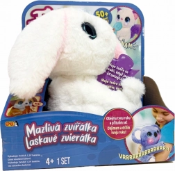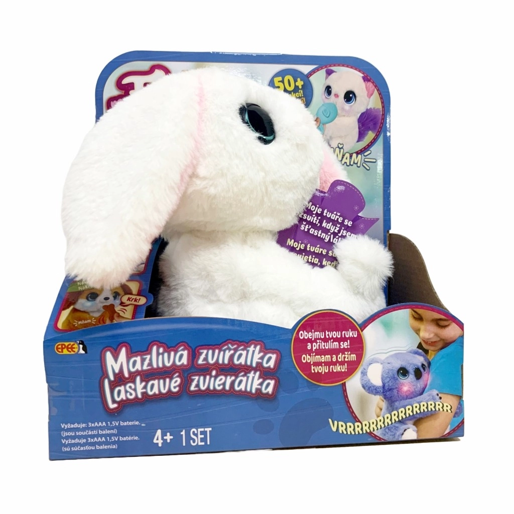 Prisrčen interaktivni zajček Rozarka iz linije MY FUZZY FRIENDS bo razveselil otroke z več kot 50 zvočnimi in gibalnimi odzivi. Ima plišaste tačke s posebnimi sklepi, ki objamejo otrokovo roko, odziva se na božanje, žgečkanje in hranjenje, svoje potrebe pa izraža s pomočjo svetlečih ličk. Baterije 3× AAA so priložene. Primerno za otroke od 4 let dalje.