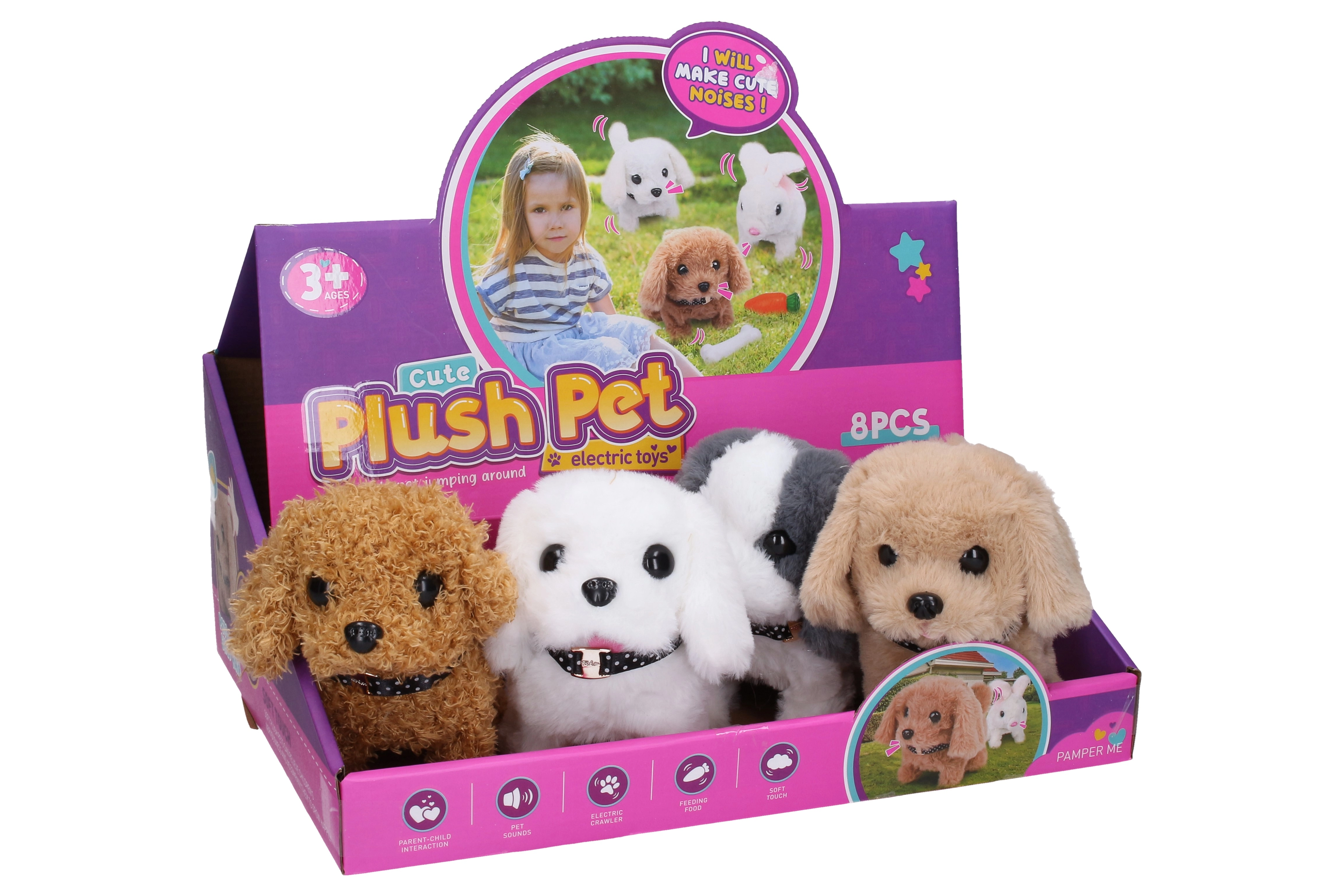 Ljubek hodeči plišasti kužek velikosti 16 cm prinaša otrokom veliko zabave. Po vklopu hodi, maha z repom in laja. Na voljo so 3 barvne različice (bela, rjava, rumena). Enostavno upravljanje zahvaljujoč stikalu ON/OFF na spodnji strani. Napajanje z 2× AA baterijama (nista priloženi).
