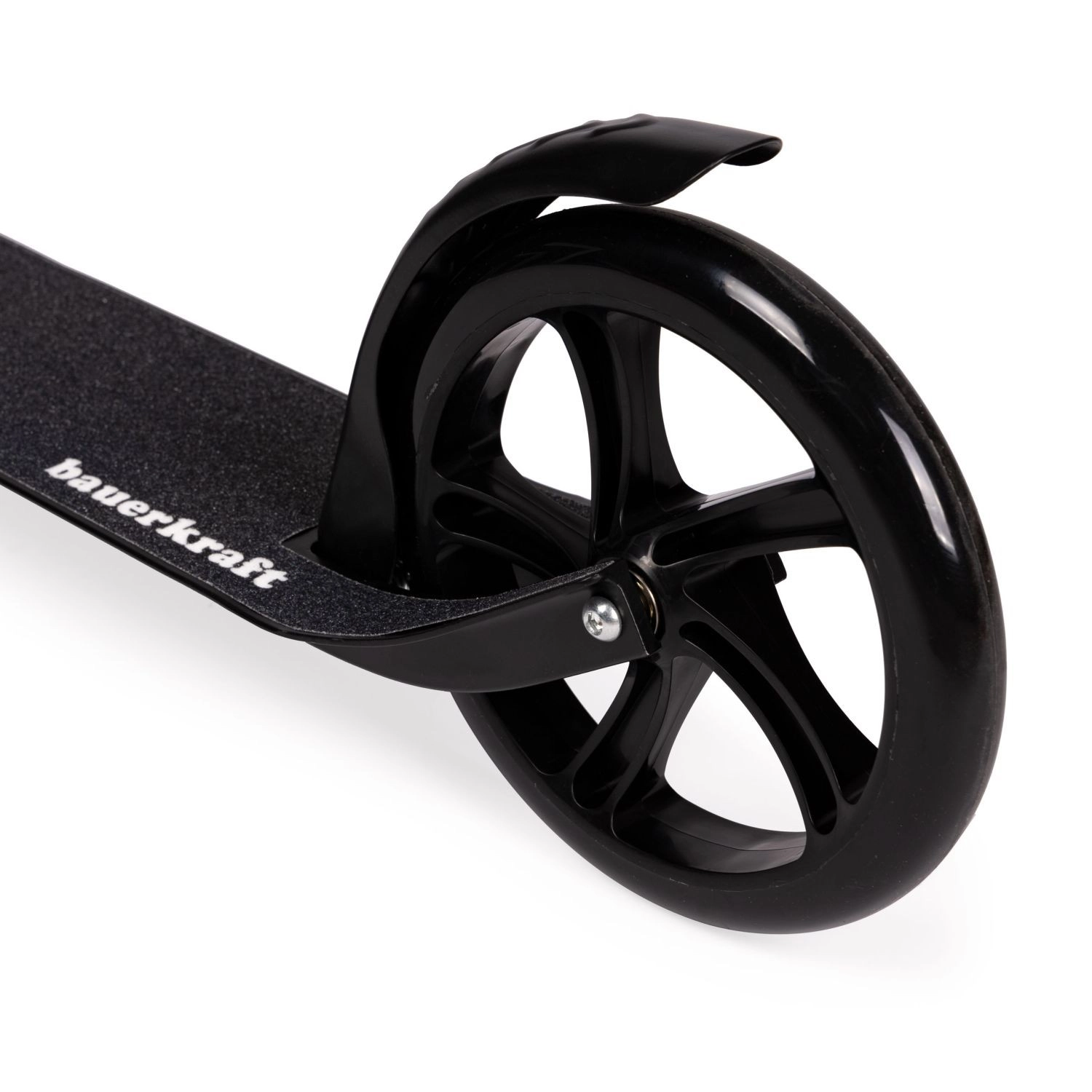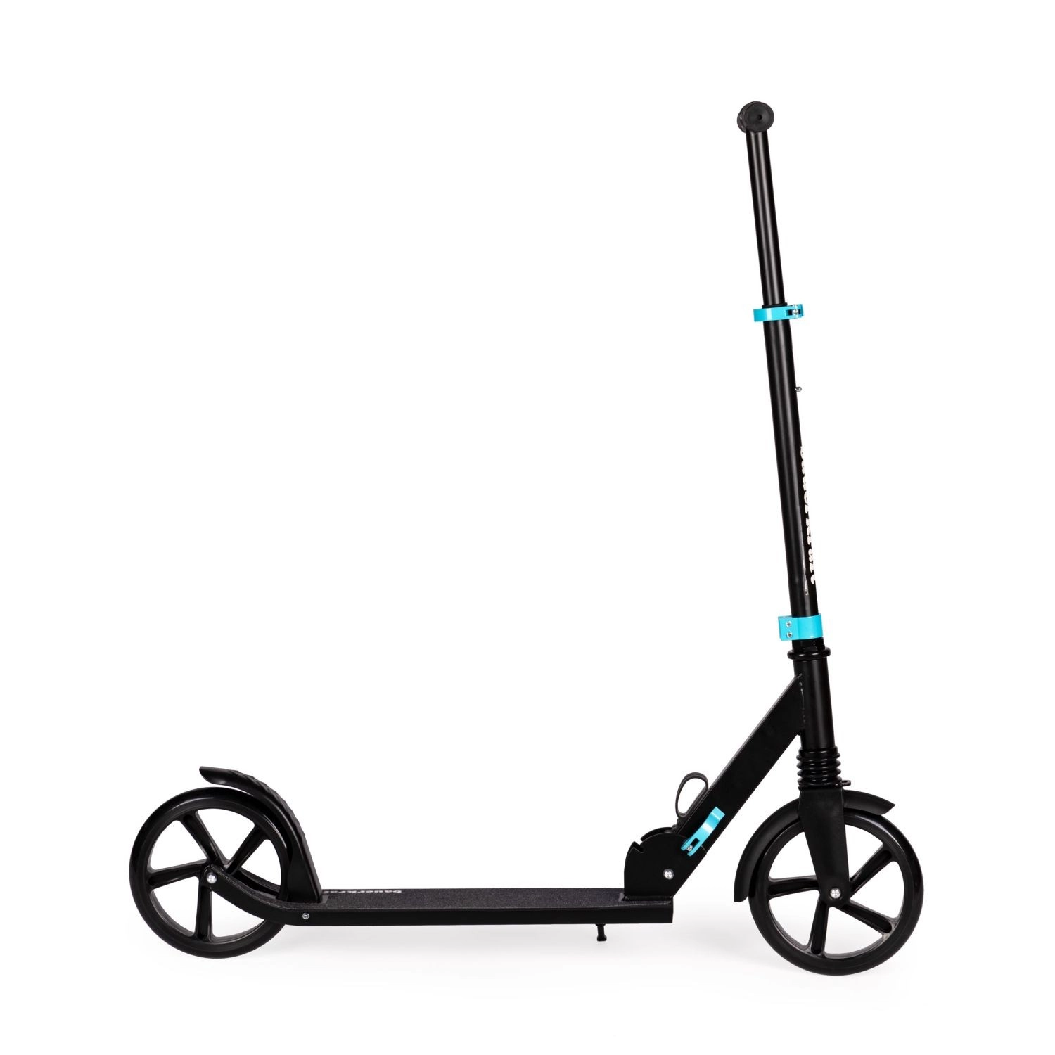 Ta zložljiv skiro iz lahkega aluminija je zasnovan za gladko in udobno vožnjo po asfaltu, kolesarskih stezah in pločnikih. Sprednje vzmetno vzmetenje blaži vibracije, velika 200-mm PU kolesa z ležaji ABEC-7 pa zagotavljajo gladko in stabilno kotaljenje. Zadnji blatnik služi kot zavora za zanesljivo ustavljanje in ščiti pred škropljenjem vode.