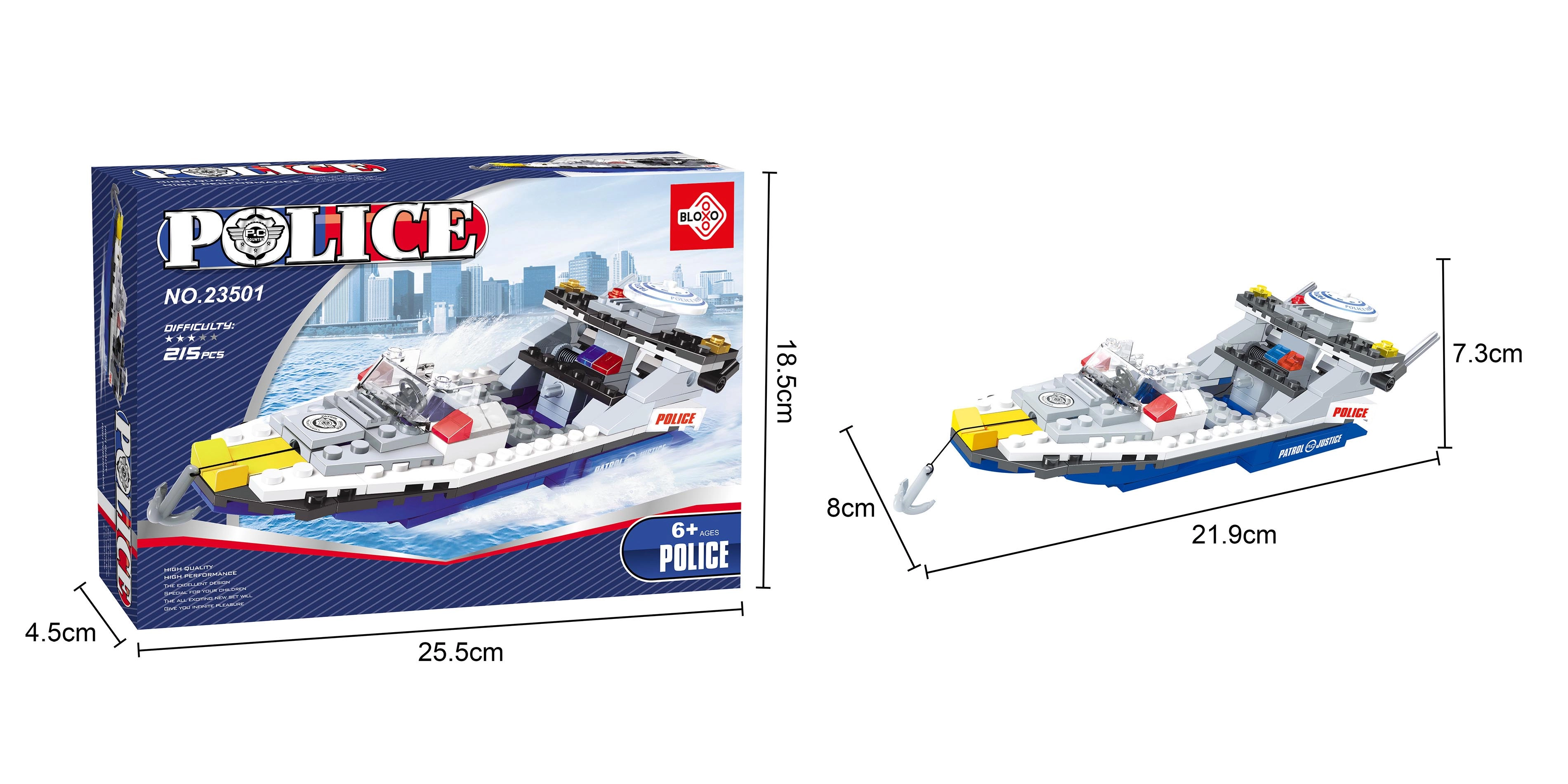 Konstruktor BLOXO policijski čoln je odlična izbira za male graditelje, ki obožujejo akcijo in zgodbe iz sveta reševalnih služb. Z 195 kakovostnimi kosi si otroci zgradijo dodelan čoln in lahko uprizarjajo napete situacije na vodi. Združljivost z drugimi konstruktorji širi možnosti gradnje in spodbuja domišljijo.