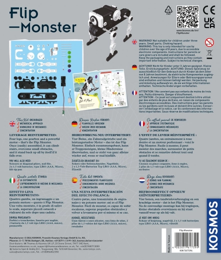 Kosmos Flip Monster – prevrnilni robotski komplet z močnim motorjem. Plezanje po stopnicah, premagovanje ovir in samodejno postavljanje. Slovenska navodila, 2× AAA.
