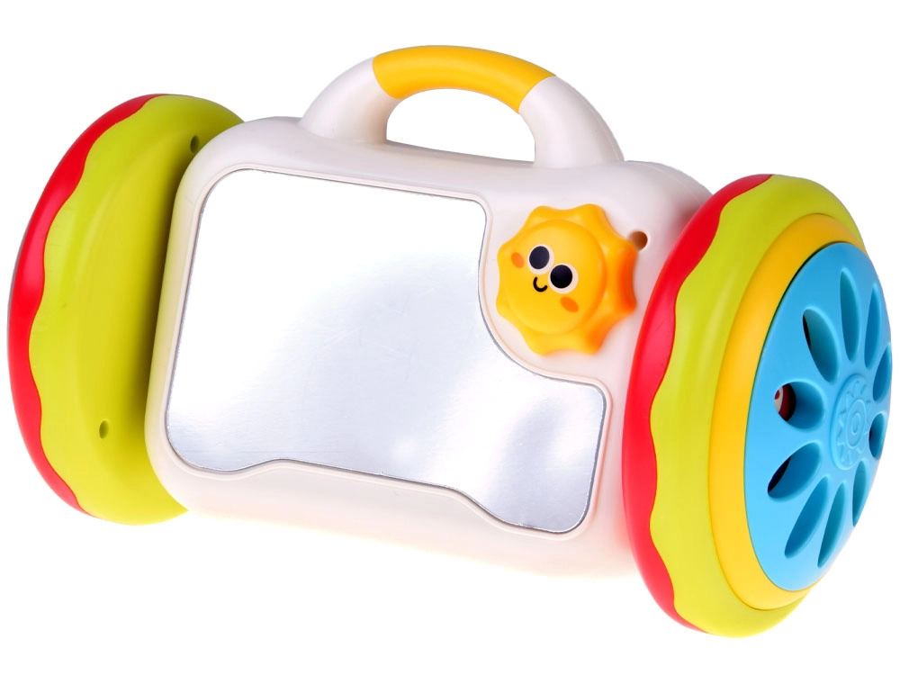 Varno ogledalo na sredini igrače vabi k odkrivanju lastnega odseva in podpira zavedanje sebe. Hkrati razvija vid in radovednost.