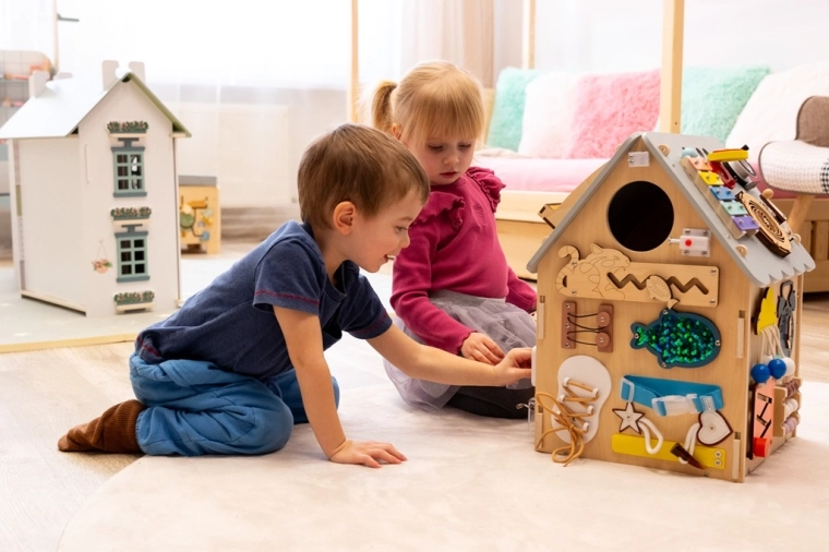 Aktivnostna plošča hiška za otroke 2Kids Toys – Siva