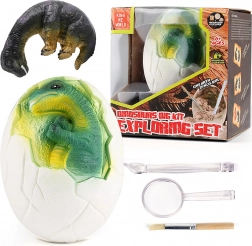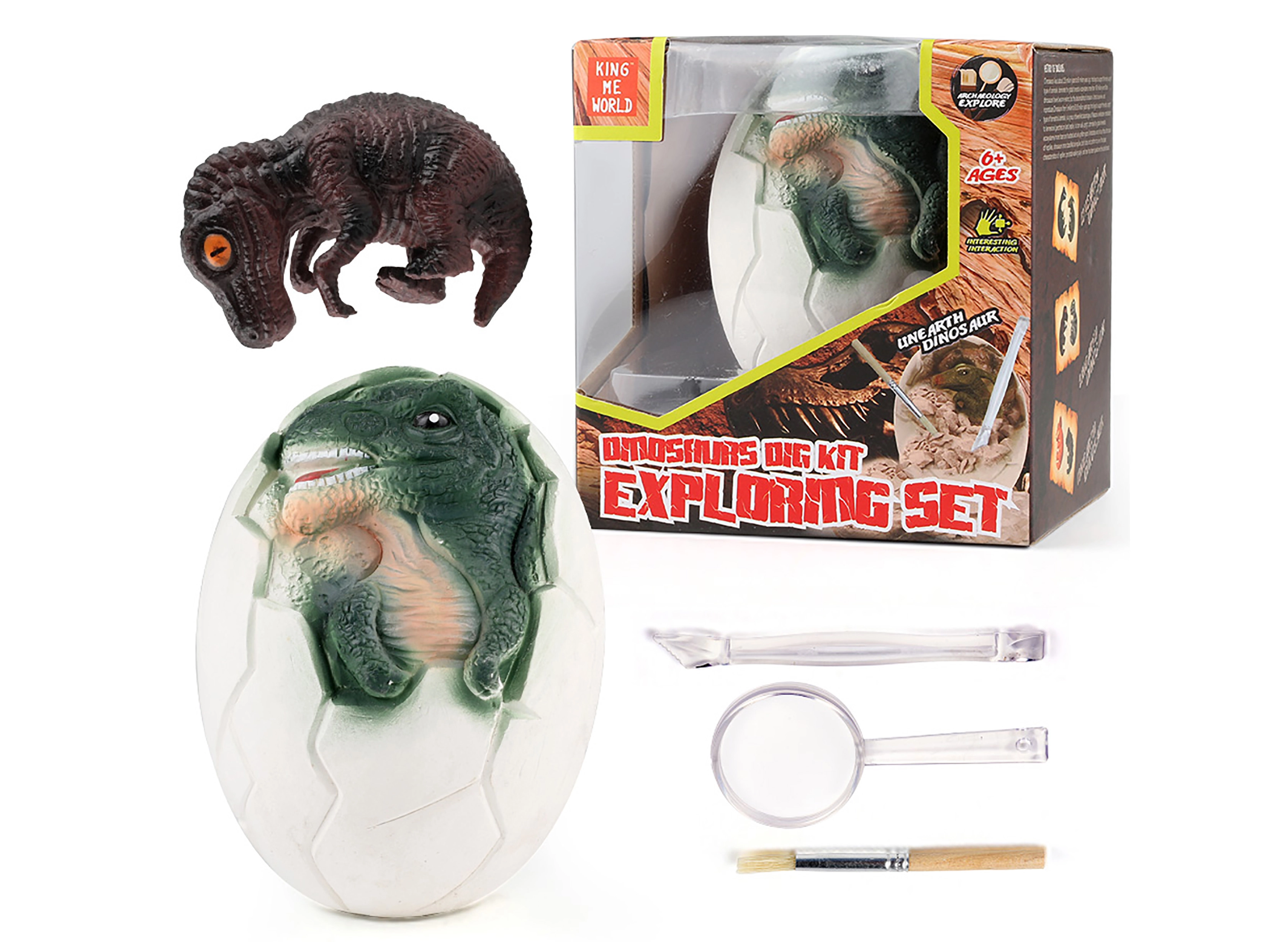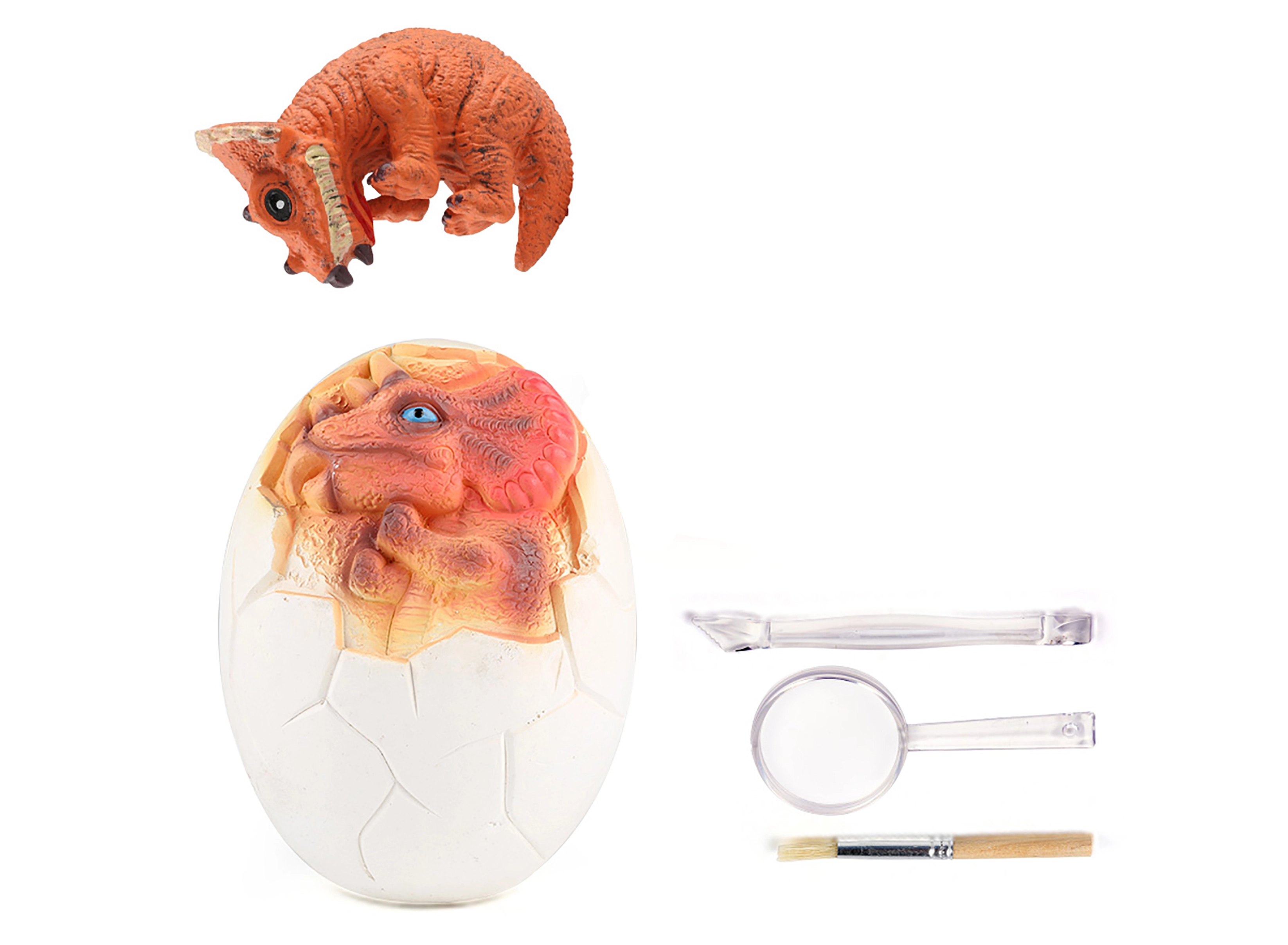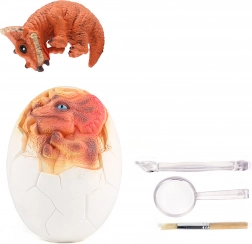 Odkrijte zabavo z izkopavanjem dinozavrovega jajca velikosti 11 cm. Otroci bodo s priloženimi orodji – nožkom, čopičem in lupo – postopoma razkrili skritega dinozavra. Odlična izobraževalna igra za male raziskovalce, ki razvija potrpežljivost, fino motoriko in radovednost. Na voljo 3 različice dinozavrovih figuric.