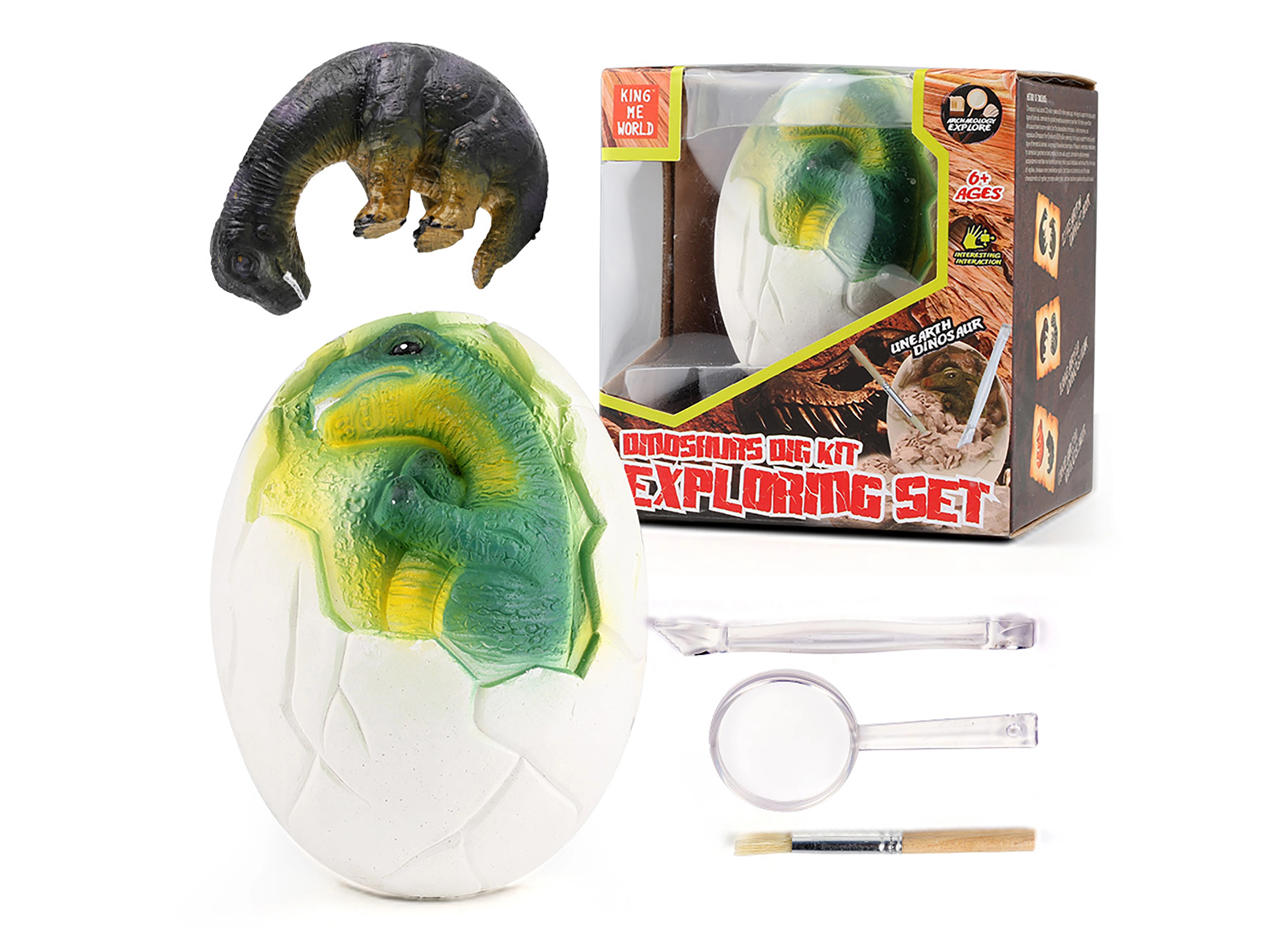 Ta arheološki set vsakega otroka spremeni v malega paleontologa. V trdnem mavčnem jajcu je skrit barvit dinozaver, ki ga otroci postopoma razkrijejo s priloženimi orodji. Izkopavanje je varno in zabavno, idealno kot darilo in kreativna aktivnost doma.