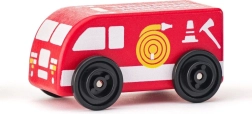 Reševalno vozilo, gasilski avto, policija, taksi, avtobus in dostavnik – šest različnih vlog za domiselno igro in učenje o delu služb za nujno pomoč ter prometu.