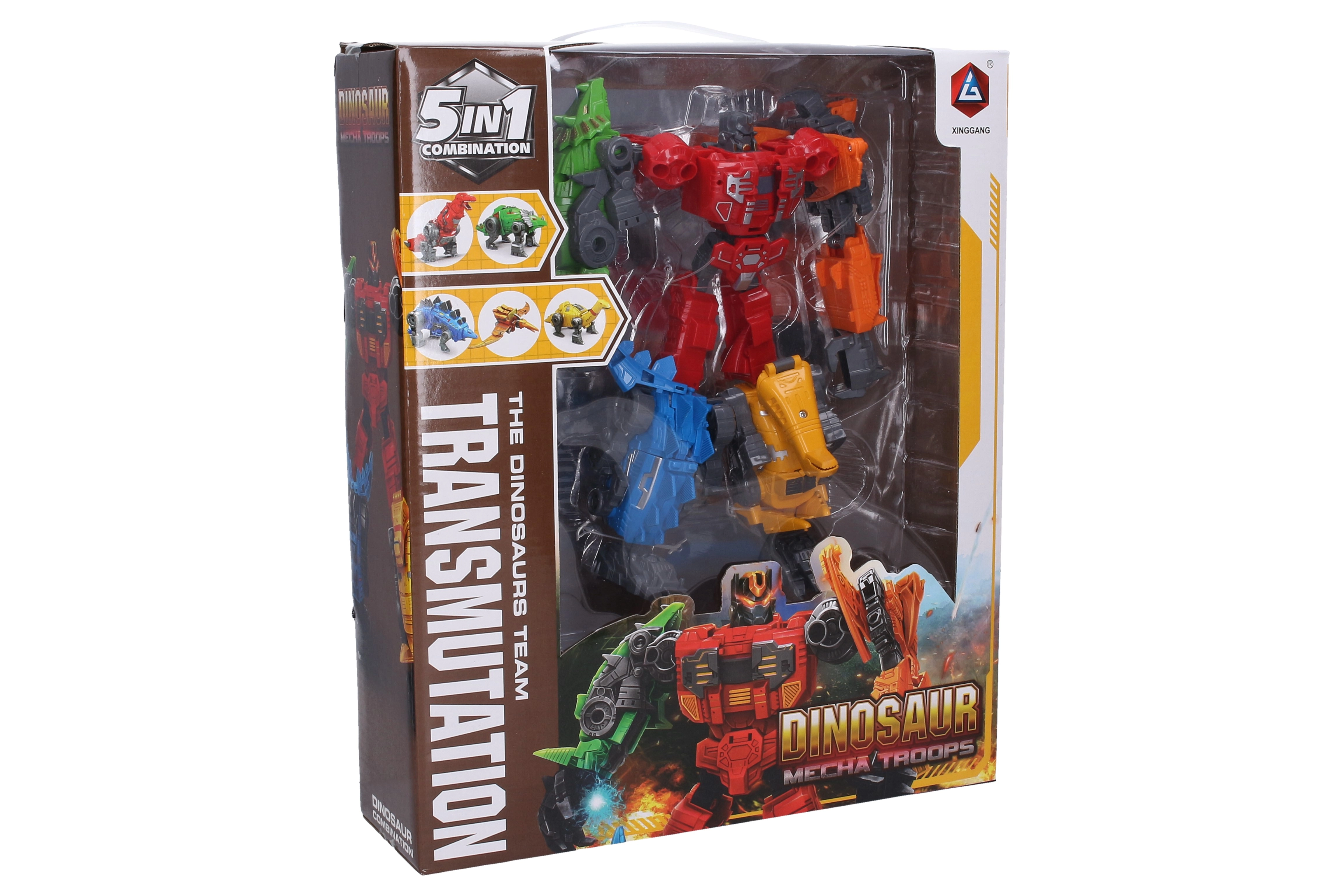 - Sistem 5v1 – pet manjših robotov se združi v enega velikega dinorobota