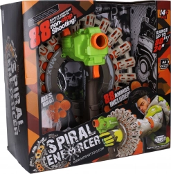 Pištola Spiral Enforcer z žogicami prinaša dinamično igro z dolgim dosegom in visoko kapaciteto “municije”. Zahvaljujoč dosegu do 24 metrov boste uživali v akcijski zabavi na večjih razdaljah, tako v notranjih kot zunanjih prostorih. Del paketa je 88 žogic in shranjevalni vreček, zato imate vse pri roki in premori v igri so minimalni.
