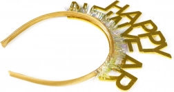 Stajliš zabavni naglavni trak v elegantni zlati barvi z bleščečim napisom HAPPY NEW YEAR bo vašemu outfitu dodal praznični šarm. Idealni dodatek za novoletno večerno zabavo, žure in tematsko fotografiranje.