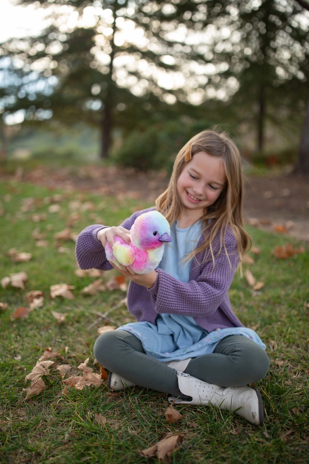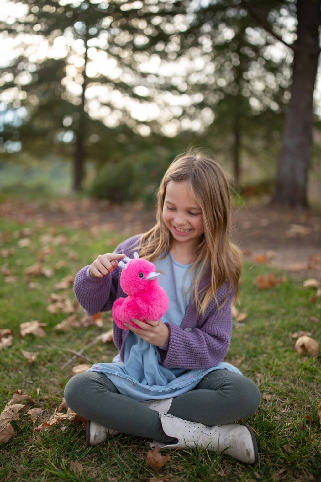 Ljubka plišasta račkica velikosti 27 cm je idealen pliškot za najmlajše. Narejena je iz mehke in žametne plišaste tkanine, ki kar vabi k objemu, in se zaradi kompaktnih mer odlično prilega otroškim ročicam. Vesele barve in prikupen izraz v otroški svet prinašajo veselje, varnost in zabavo – popolna kot darilo ali dekoracija otroške sobice.
