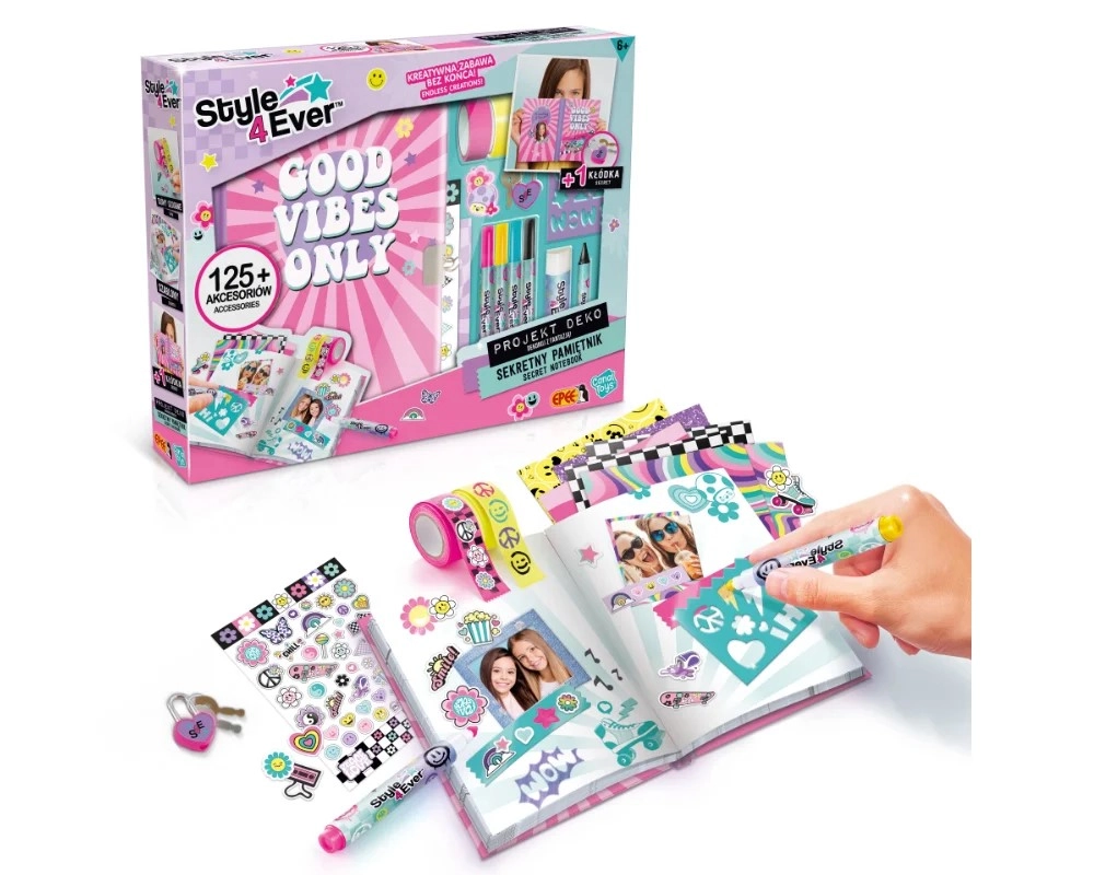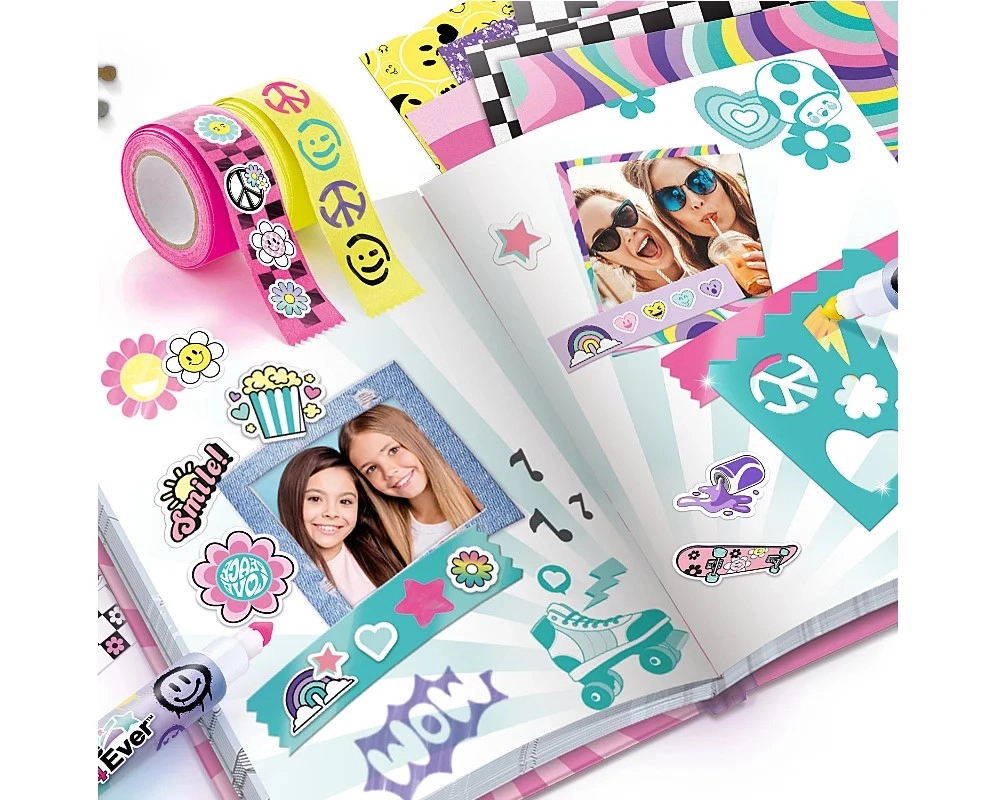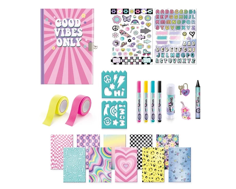 S tem zabavnim setom si otroci ustvarijo svoj osebni in varen dnevnik zahvaljujoč ključavnici, ki varuje njihove misli in doživetja. Bogata oprema spodbuja domišljijo in omogoča edinstveno personalizacijo – od barvitih vzorcev do izvirnih nalepk.