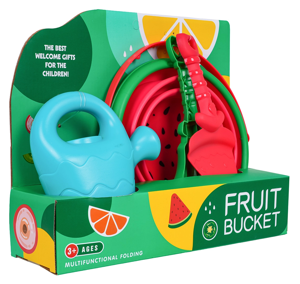 Odkrijte praktičen komplet za pesek, s katerim bo vsaka igra ob vodi in v peskovniku še zabavnejša. Zložljivo vedro iz odporne plastike in silikona se hitro zloži v kompaktno obliko, zato gre v vsako torbo. Lopatka, grabljice in kannica so zasnovane za male otroške roke – lahke, varne in z gladkimi robovi.