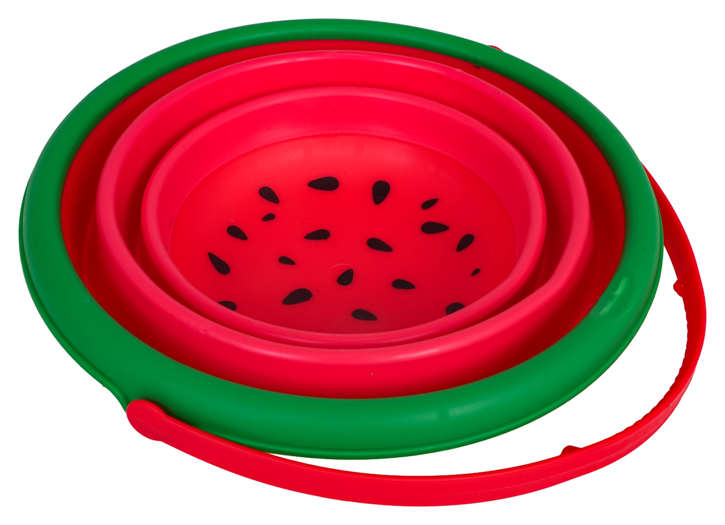 Vedro se zloži v ploščato obliko, enostavno za prenašanje, hkrati pa ostane prostorno in stabilno, ko je razprto.