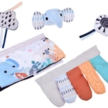 - šumeči materiali, piskalke, tekstilni trakci in različne teksture