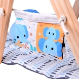Ustvarite za svojega dojenčka varno in spodbudno mesto za igro in razvoj s to leseno igralno gugalnico in mehko izobraževalno podlogo. Naravni les, viseče senzorične igrače (oblaček, sonček, slonček) ter podporni vzglavnik podpirajo koordinacijo oko–roka, motoriko in čutno zaznavanje. Enostavno vzdrževanje, stabilna konstrukcija in univerzalen dizajn za vsak interier.