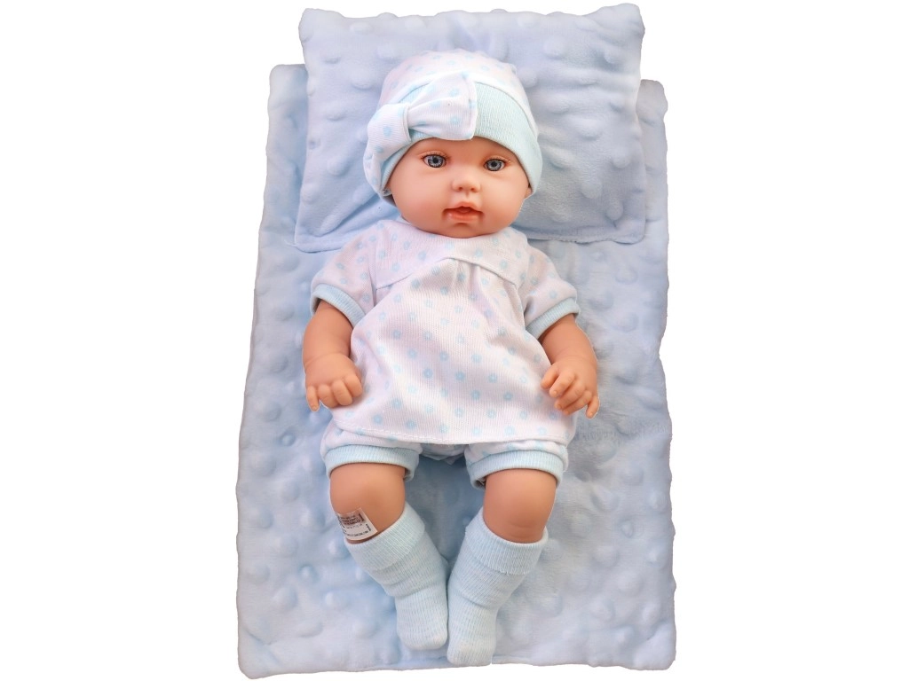 Prisrčna punčka velikosti 33 cm bo razveselila vsako malo mamico. Izdelana je iz kakovostne plastike in je dobavljena v praktični škatli z okencem. Lahka, vzdržljiva in enostavna za prijem, idealna za vsakodnevno igro brez baterij.