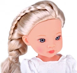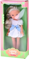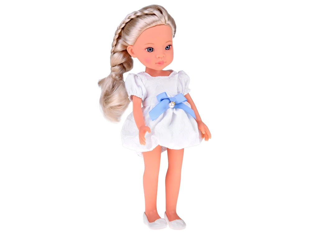 Ljubka punčka Lovely Girl z dolgimi blond lasmi v kiti bo očarala vsakega otroka. Ima premične okončine, realistične oči in obraz ter je oblečena v belo obleko z modro pentljo in bisernim detajlom. Zahvaljujoč kakovostni plastiki in lasem, ki jih je enostavno česati, je idealna za igro vlog, preoblačenje in oblikovanje pričesk.