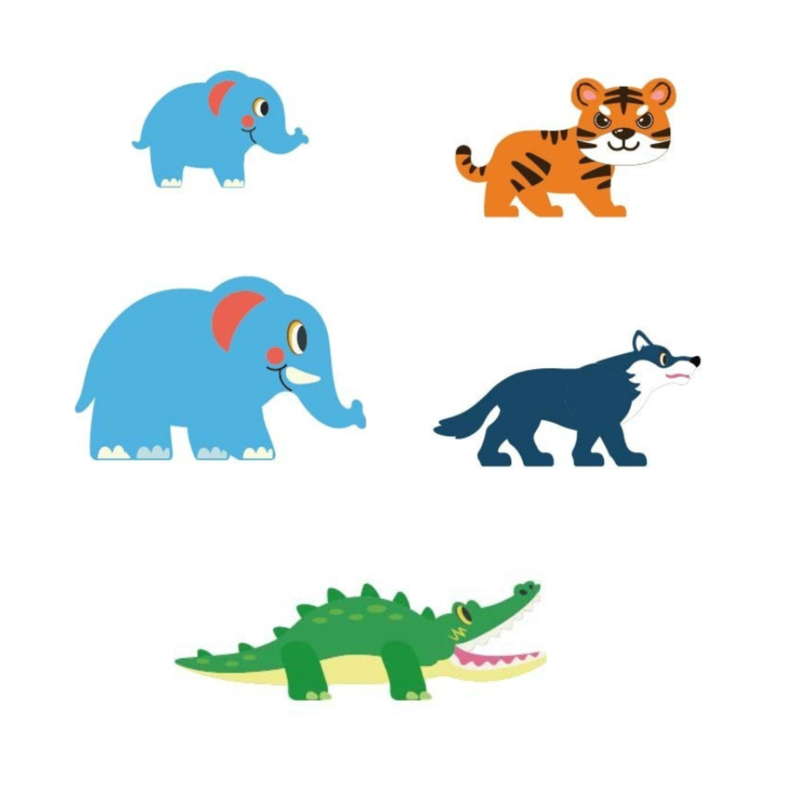 Figurice slona, tigra, krokodila in volka vnesejo v igro pripovedi ter razvijajo domišljijo in komunikacijske veščine.