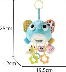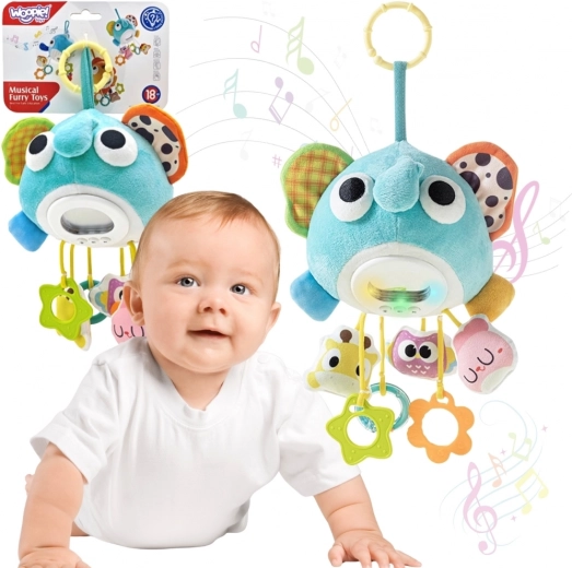- plišasti slon z glasbeno-svetlobno funkcijo, 4 viseče igrače
