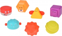 Barvne gumice omogočajo lahko vstavljanje in izvlek delčkov, urijo prijem, natančnost in moč prstov. Priloženih je 7 različnih oblik in majhno ogledalce za senzorično raziskovanje.