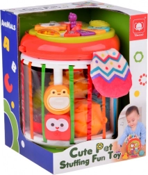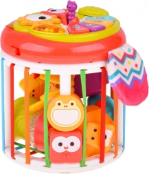 Štirje gumbi z živalmi predvajajo tone do–re–mi–fa, pristne živalske zvoke ter kratke instrumentalne melodije in pesmice. Otroci naravno razvijajo sluh in ritem skozi igro.