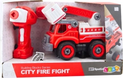 Sestavi, privij in na akcijo! Ta gasilniški tovornjak za sestavljanje razvija spretnost in domišljijo, po vstavitvi motorja pa vrtalnik postane daljinski upravljalnik, ki požene avto naprej. Izdelan je iz vzdržljivih in varnih materialov, v realistični rdeče-beli kombinaciji, z vijaki v kolesih in gibljivih delih za pravo privijanje.