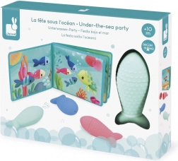 1× vodoodporna kopalna knjižica »Oceanska zabava«, 3× špricajoča igrača v obliki ribice
