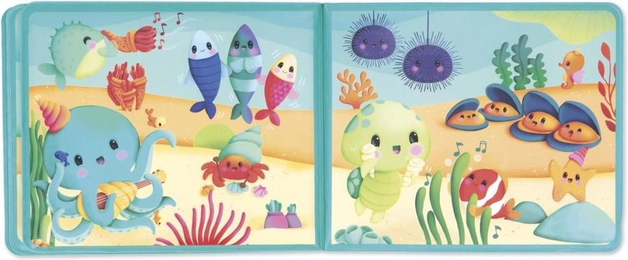Odkrijte pisan podvodni svet s kopalno knjižico »Oceanska zabava«, kjer se otroci srečajo z želvami, klovni ribicami, kozicami in morskimi zvezdami. tri ljubke ribice za v vodo zgodbo dobesedno oživijo – ob stisku trebuščka špricajo vodo in spremenijo kopanje v veselo igro.