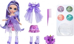Ta modna punčka z dolgimi vijoličnimi lasmi in izrazitim outfitom ponuja povsem nov način igre. Zmešaj sluz z barvnimi bleščicami, napolni z njimi prosojne dele nog in opazuj, kako se Violetin videz v trenutku spremeni. Zahvaljujoč sklepom je punčko enostavno postavljati v poze in ustvarjati modne prizore.