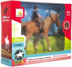 - Plastični konj z uzdo in sedlom, figurica džokeja s čelado