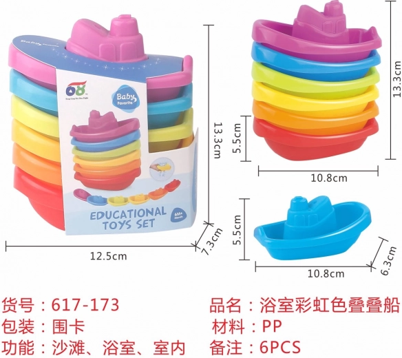 Zabaven set 6 pisanih čolničkov za dojenčke od 6 mesecev polepša vsako kopanje in igro v pesku. Izdelani so iz varnih in kakovostnih materialov, imajo gladke robove in žive barve, ki pritegnejo otrokovo pozornost.