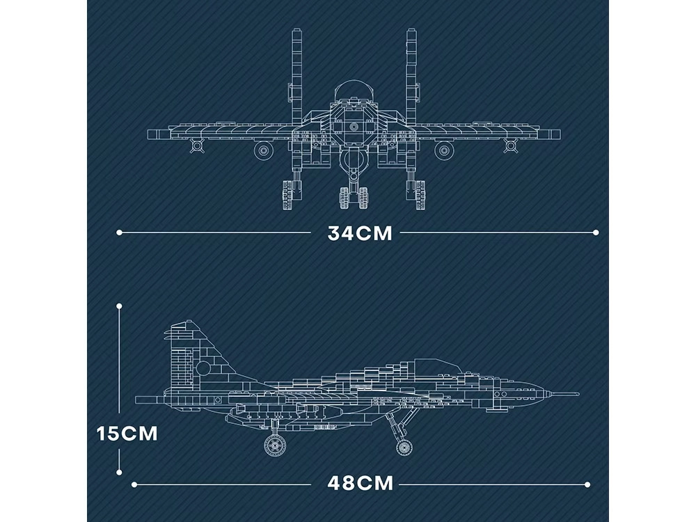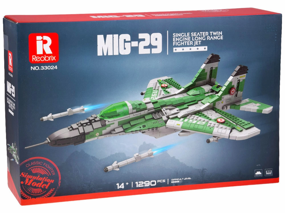 Ta podroben model MIG‑29 v sivo‑zeleni vojaški kamuflažni izvedbi verno prikazuje značilna krila, dvojne navpične repne površine ter realistične zračne vstope dvomotorne zasnove. Zaradi impresivnih mer bo učinkovit razstavni eksponat na polici in privlačen komplet za zahtevnejše graditelje od 14. leta dalje.