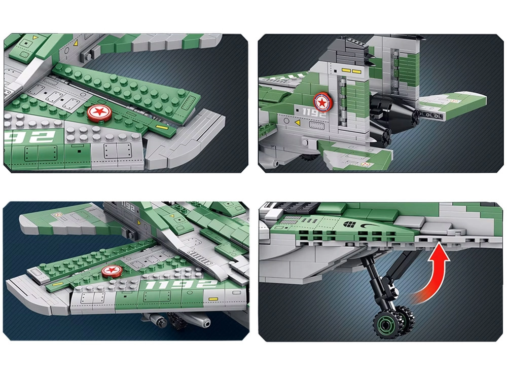 Ne manjkajo izvlečno in uvlečno podvozje, prozoren pokrov kabine in možnost namestitve različnih vrst izstrelkov za dinamično igro in uprizarjanje misij. Komplet razvija ročne spretnosti, potrpežljivost in ustvarjalnost, hkrati pa približa osnove aerodinamike in letalskega inženirstva.