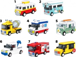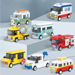 V ponudbi so priljubljeni stroji mest in gradbišč: tramvaj, avtobus, šolski bus, reševalno vozilo, gasilno vozilo, traktor, mešalec betona in kamper/van. Vsak model je samostojen set s slikovnim navodilom, zato je primeren tudi za začetnike.