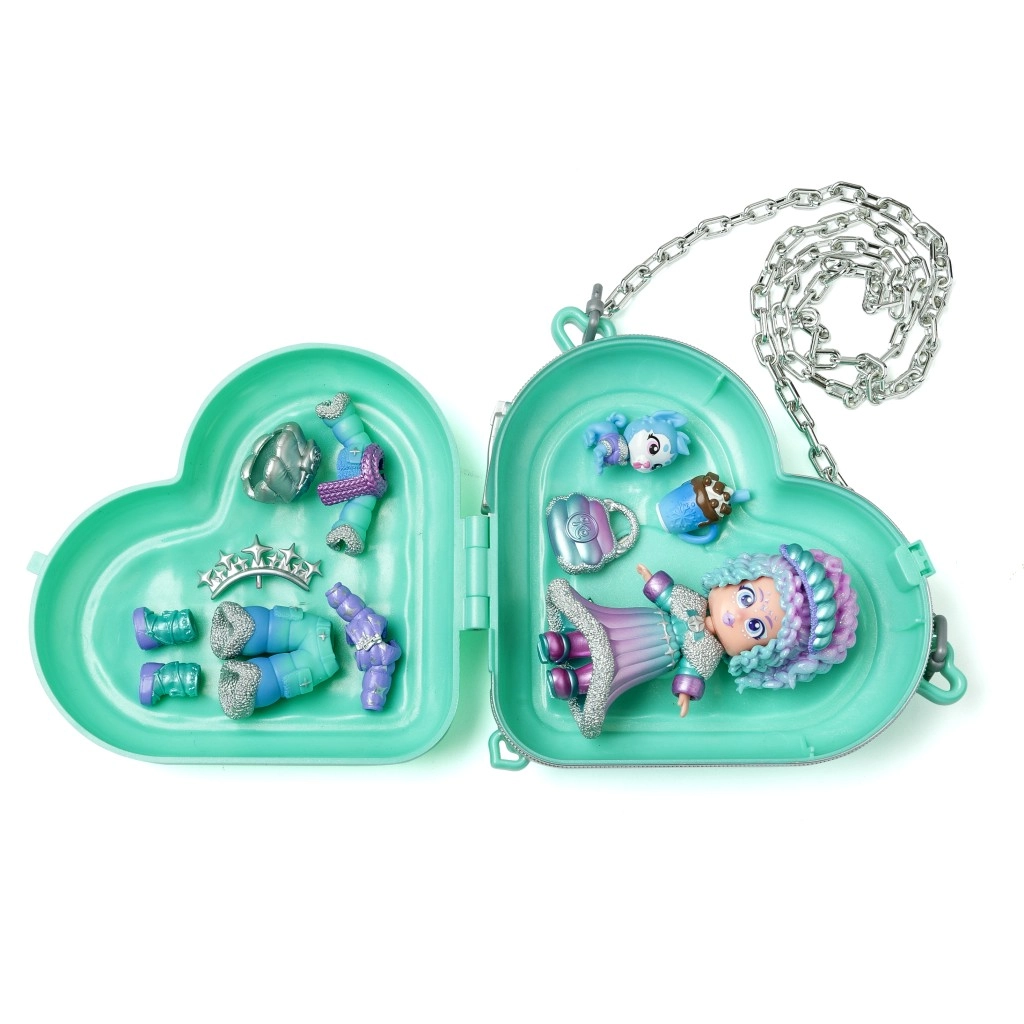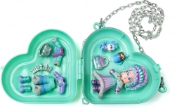Trd etui v obliki srca ohrani punčko in dodatke lepo skupaj, z verižnim paščkom pa ga lahko vzameš kamor koli.