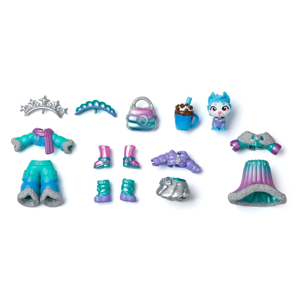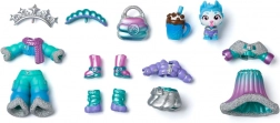- 1 punčka Chloe, 3 outfiti, 2 para čevljev, 2 tiare, prigrizek, hišni ljubljenček, torbica v obliki srca