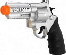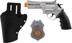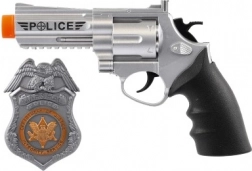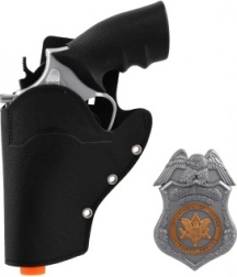 Ta komplet vključuje plastični revolver z avtentičnimi detajli in varnostnim oranžnim koncem, ki zagotavlja varno igranje.